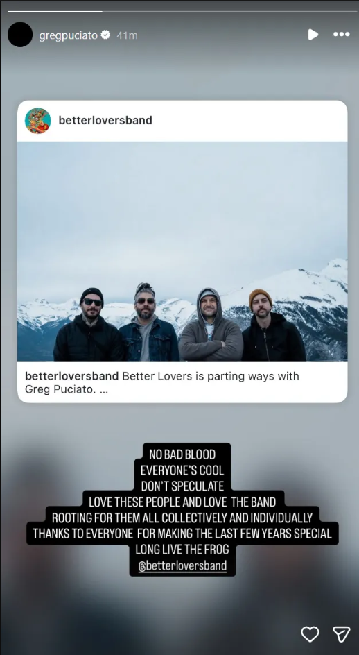 “Better Lovers is parting ways with Greg Puciato.
