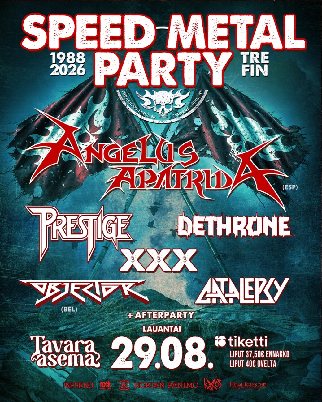 Speed Metal Party tekee paluun kesällä 2026, kun tapahtuma valtaa Tavara-aseman Tampereella lauantaina 29. elokuuta – ja pääesiintyjäksi saapuu espanjalainen thrash-tykki Angelus Apatrida.