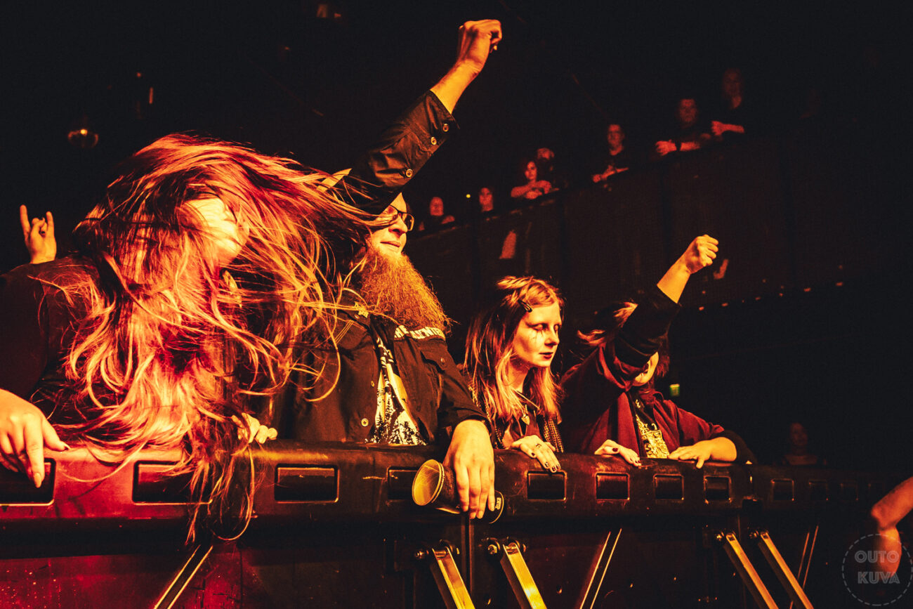 Legendaarisen doom-partion lämmittelijänä toimi niin ikään supisuomalainen Vermilia. ”Supisuomalainen” onkin tässä yhteydessä erityisen osuva nimitys kuvaamaan yhden naisen kipparoimaa projektia, joka ammentaa musiikin ja sanoitusten tunnelmat syvältä suomalaisen melankolian syövereistä. Vermilian missiona on esittää suomeksi laulettua mustanpuhuvaa pakanametallia yhdistettynä luonnonläheisiin teemoihin, missä se onnistuukin loistavasti. Vermilia on alusta loppuun yhden naisen show, mikä keikalla näkyi siten, että ainoastaan laulaja esiintyi paljaskasvoisena muiden soittajien piiloutuessa huppujen ja huivien alle. Vermilialta taittui uskottavasti niin ärjyntä kuin puhdas laulu, ja laulajan takoma shaamaanirumpu korosti keikan ylimaallista tunnelmaa. Vermilia sai alkunsa vuonna 2017, ja vajaassa kymmenessä vuodessa karttunut kokemus välittyi itsevarmana esiintymisenä. Vermilia keräsi lämppäribändiksi varsin monilukuisen ja omistautuneen yleisön, mikä ei todellakaan ole itsestäänselvyys. Yllekirjoittaneelle Vermilian keikka oli terve muistutus, että lämppärit kannattaa aina mahdollisuuksien mukaan tsekata, sillä ilman viime perjantaista kohtaamista olisin edelleen pimennossa senkin suhteen.